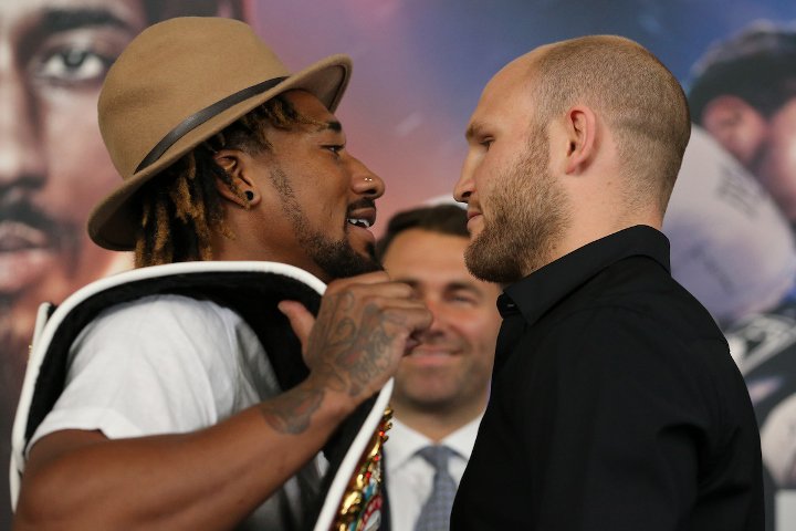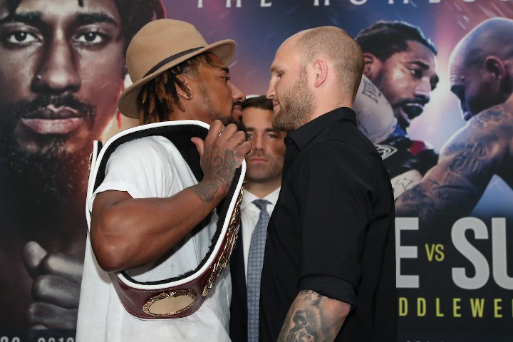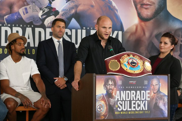 Demetrius Andrade (27-0, 17 KO) w drugiej obronie tytułu mistrza świata wagi średniej federacji WBO zmierzy się z naszym Maciejem Sulęckim (28-1, 11 KO). Dziś panowie po raz pierwszy spojrzeli sobie z bliska w oczy. Oto fotorelacja.