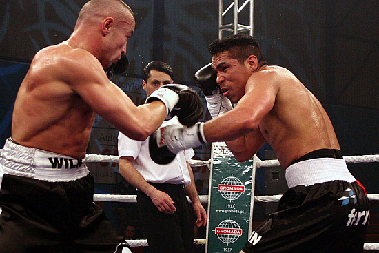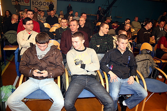 Wyprowadzanie zawodnikow za hostessami jest troche smieszne bo sie chlopcy (razem z ochrona) gapia na tylki dziewczyn i sie jeszcze potkna kiedys o cos gdzies... swoja droga pani z tabliczka i w zoltych majteczkach niczego sobie. Walka wieczoru. Tak jak wspominal Pawel Kolodziej, Laszlo Hubert ma naprawde szczelna garde. Nie bylo gdzie wlozyc ciosu to Masternak go lal na rekawice i szybko pozamiatal. Sedzia nie mial prawa zatrzymac walki w momencie w kotrym to zrobil, ale to i tak by nie zmienilo koncowego wyniku. Czy ten pasek jest koniecznoscia? ...chyba sam sobie kiedys zaloze wlasna organizacje ABC- "Abstractic Boxing Council" a i pas bede mial ladniejszy bo ten TWBA to nawet nie wyglada za bardzo...