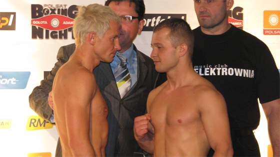 Redakcyjo - ufunduj jakiś medal z kartofla dla tego, kto trafnie wytypuje zwycięzców wszystkich walki, które się odbędą. Ja zaczynam: Sieradzki - Vicena - 1 Krzysztof Szot (63,6 kg) vs Łukasz Maciec (63,3 kg) - 1 Maciej Zegan (60,9 kg) vs Krzysztof Cieślak (60,9 kg) - 2 Mateusz Masternak (89,4 kg) vs Łukasz Janik (90,1 kg) - 1 Wojciech Bartnik (91,6 kg) vs Artur Szpilka (91,0 kg) - 2 (które się odbędą...) Damian Jonak (70,4 kg) vs Mariusz Cendrowski (72,05 kg) - 1 Dawid Kostecki (79,6 kg) vs Grzegorz Soszyński (79,0 kg) - 1 Andrzej Gołota (116,3 kg) vs Tomasz Adamek (97,2 kg) - X (remis)