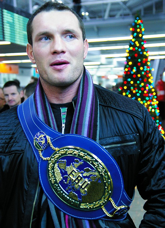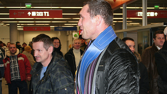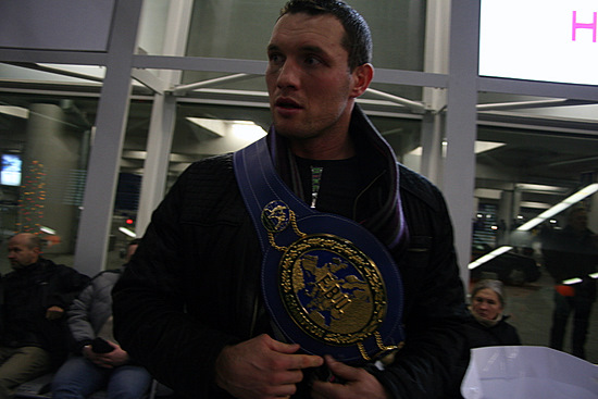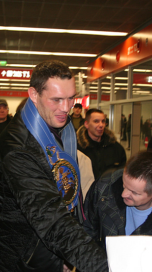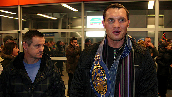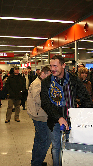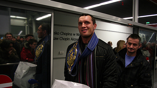 Mistrz Europy w wadze ciężkiej Albert Sosnowski (45-2-1, 27 KO) na lotnisku im. Fryderyka Chopina w Warszawie.