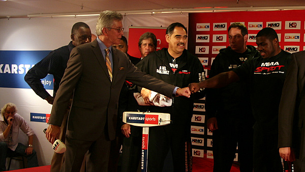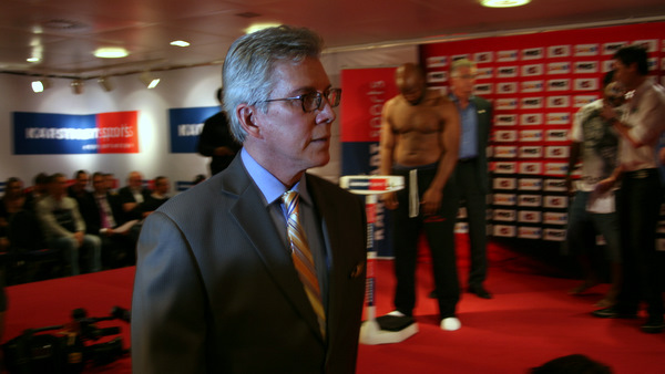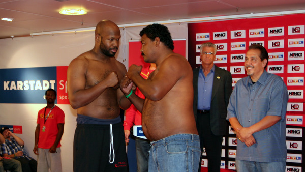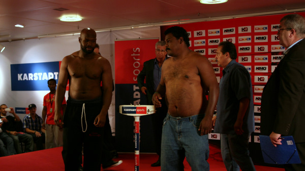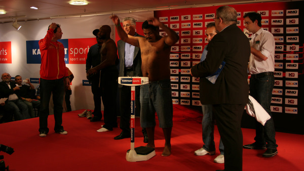 Tam obok Banksa wszedł jakiś brzuchol na wagę. Ktoś z widowni sobie jaja zrobił, ale gdzie jest tak na prawdę jego przeciwnik, bo to chyba nie on.