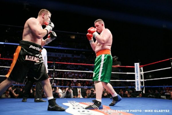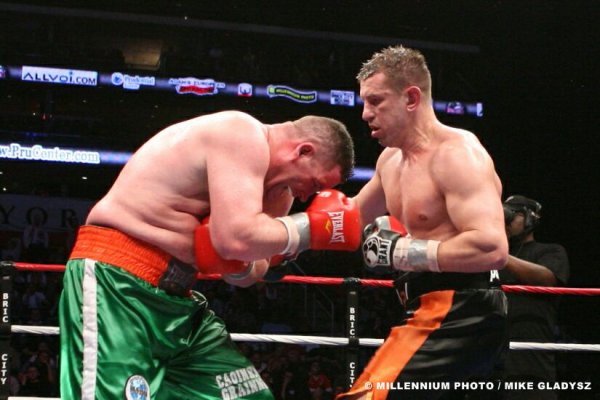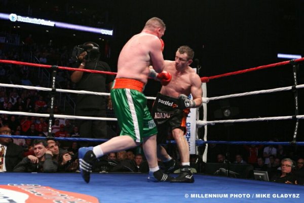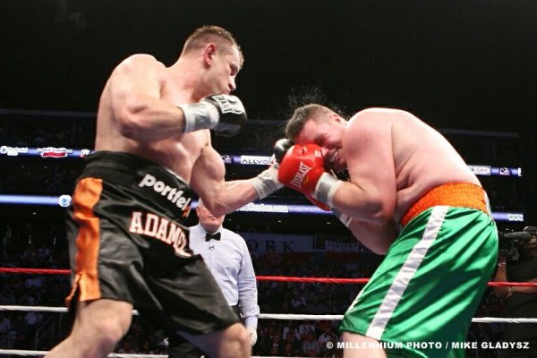Wstyd po prostu, że zawodnik z TOP5 męczył się przez 12 rund z kimś takim jak McBurger, który jest w trzeciej setce rankingu boxrec, . Rozumiem to, że nie był w stanie powalić jednym ciosem takiego 130 kilogramowego kloca, będąc zawodnikiem, który zaczynał swoją karierę w wadze półciężkiej, ale żeby chociaż nie zmusić go do poddania przez narożnik bądź sędziego. Adamek nie był w stanie zasypać kombinacjami ciosów Irlandczyka na tyle skutecznie aby ten skapitulował przed czasem. Jeśli był to sparing, to OK Jeśli nie to lipa! Niestety nie widzę Adamka z Vitalim z uwagi na to że Góral jest szybszy i jego ciosy nie zrobią na Kliczce większego wrażenia ,Ukrainiec będzie dopuszczał, kontrował,kontrował aż skontruje i będzie po walce. Jedynie zdrowy Solis i Haye mogą zagrozić Doktorowi Żelazna pięść. Dobranoc