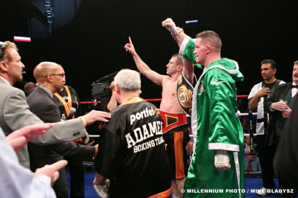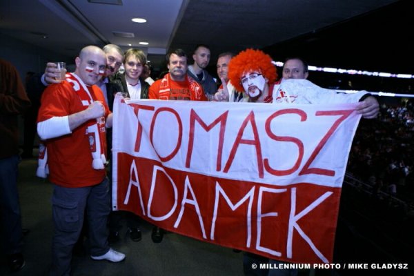 Wrocilem do domu przed paroma godzinami... Kilka spostrzezen. Po pierwsza, walka byla emocjonujunacym sparringiem i takim wlasnie miala byc. Zaskoczony bylem faktem, iz McBride wytrzymal 12 rund, ale rozumiem doskonale strategie Bloodwortha, ktory niemalze zachwycal sie przebiegiem walki. Znakomity material przed przygotowaniami do wrzesniowej walki z Vitaliyem. Sama walka byla elementem przygotowawczym i ci wszyscy, ktorzy to rozumieja, sa zadowoleni z jej przebiegu. Reszcie... noc coz, reszcie juz dziekujemy...lol... Publika w Prudential rewelacyjna, atmosfera wymarzona dla kazdego profesjonalnego piesciarza. Rozmawialem z wieloma ludzmni po walce i musze powiedziec, ze Adamek powinien byc szczesliwym, ze ma taka grupe fanow. Bylo tak bialo-czerwono ( ja rowniez pozwolilem sobie na uzycie waszych barw by kibicowac Adamkowi ), ze az oczy "trzaskaly z zachwytu"... Nie wiem ile dokladnie bylo ludzi, ale z moich obserwacji okolo 7-8 tysiecy w czasie walki Gorala. Nawet Fonfare i Ali'ego obejrzalo prawdopodobnie 5-6 tysiecy. Rozumiem, ze dla "znakomitosci" pokroju Pindery, w Prudential nie bylo wiecej jak 4 tysiace...lol... (aluzja do jego ostatnich spostrzezen)... Reasumujac, bylo niesamowicie.