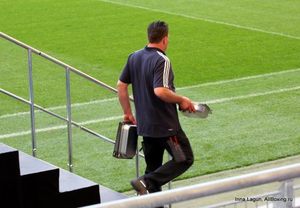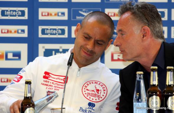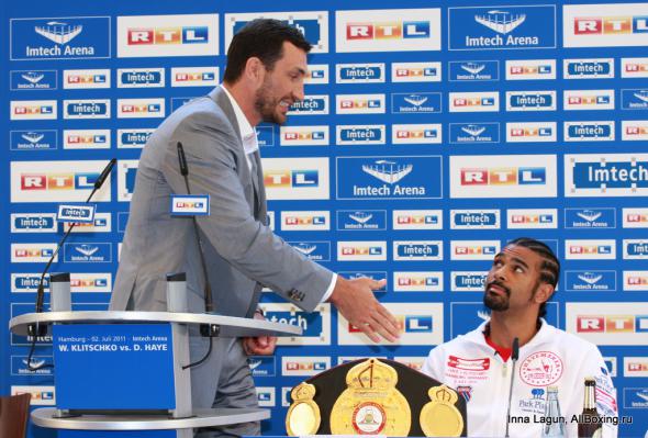 A zobaczcie sobie panowie na 11 zdjęcie od góry... Naprawdę myślicie ze niepodanie ręki jest wyrazem buractwa a nie celowa zagrywką ? Obaj dobrze wiedzą co trzeba zrobić aby walka się sprzedała jak najlepiej. Najlepiej z jednego zrobić zarozumiałego buraka-cwaniaka, a z drugiego pogromcę wieśniactwa szanującego każdego przeciwnika. I sukces marketingowy gwarantowany ;) Włada ani trochę nie zabolało nie podanie ręki i Haye też o tym wie, bo chłopaki zwyczajnie znają swoje role w tym 'teatrze'