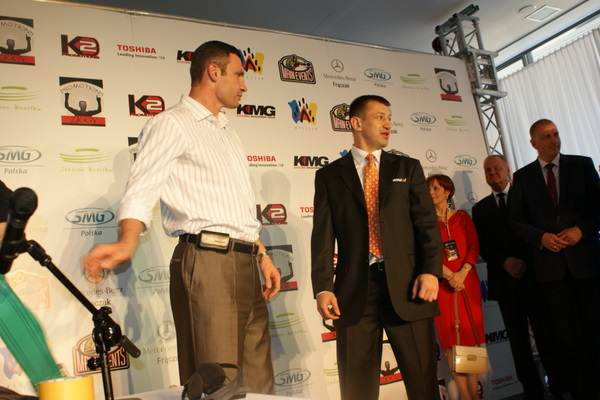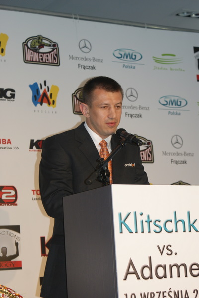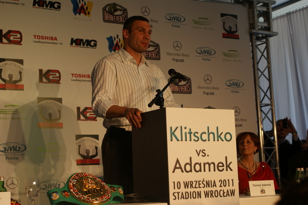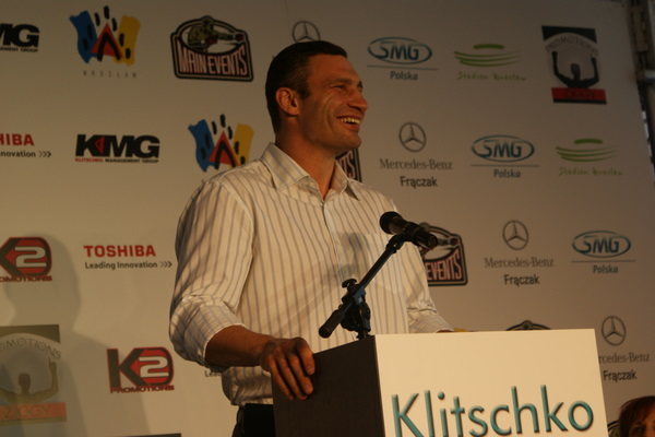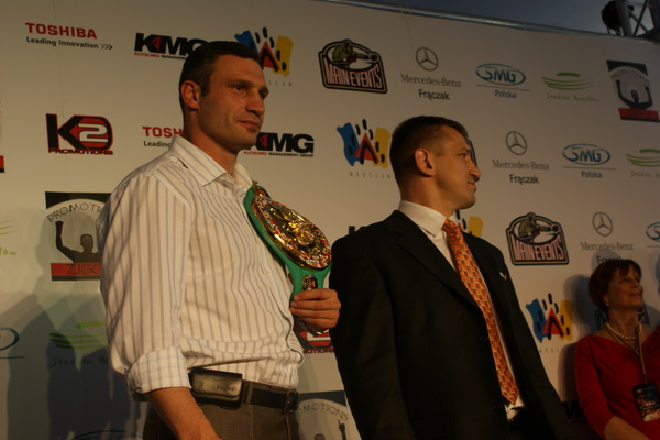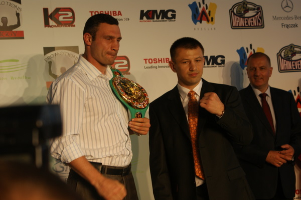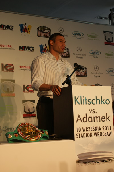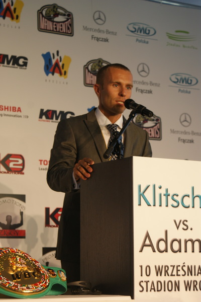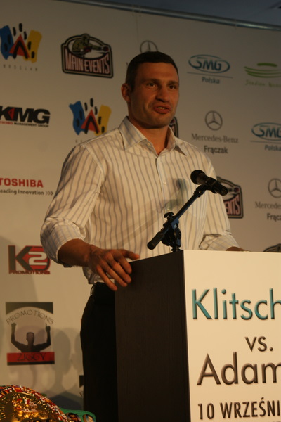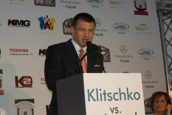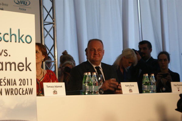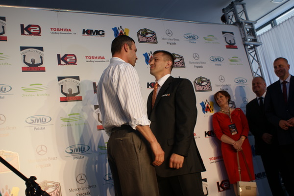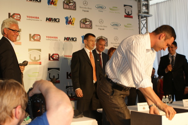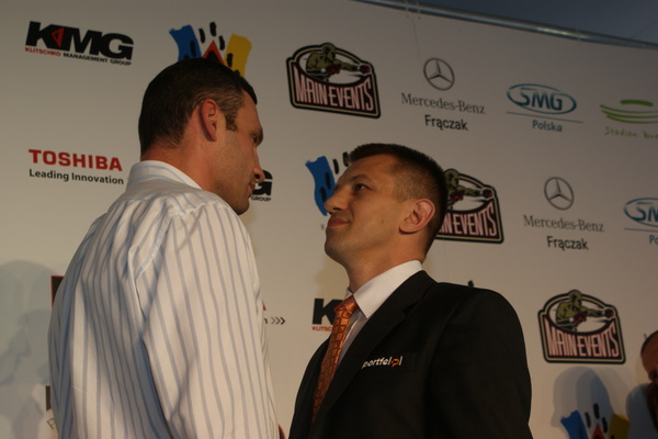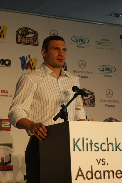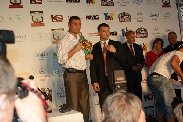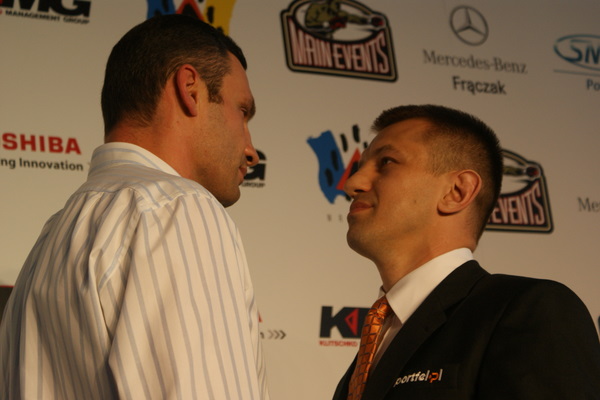 Vitalij był ale dał dupy na całej linii!! Byłem na konferencji a raczej przed budynkiem. Na konferencji to byli tylko szychy i dziennikarze. Ale ogólne wrażenie z tego to totalna klapa!!! Vitek wszedł bocznym wejściem i wyszedł również bocznym. Nikt z fanów go na oczy nie widział. Co to ma być? Wystraszył się czy jak? Adamek chociaż przeszedł i się przywitał z fanami na dzień dobry. Szacun dla niego. Ale potem to już kompletne dno. Rolety zasłonięte nic nie było widać. Fani jedynie cieszyli oko przechodzącymi hostessami, które muszę przyznać było naprawdę piękne. Po konferencji oczywiście zamkniętej dla śmiertelników nasz Tomek w końcu ponownie pojawił się przed kibicami a raczej przed kamerą Polsatu. Dał krótki wywiad, a na pytanie czy można zrobić sobie z nim zdjęcie odpowiedział, że już musi iść. Niestety. Bardzo wielkie podziękowania dla Darka Snarskiego i Maćka Zegana, którzy potrafili jako jedyni rozdać autografy. Dzięki wielkie. Mateusz Borek też się trochę pokazał. Ale WIELKI NEGATYW dla Kliczki. To co on zrobił dziś i jak zlekceważył fanów to chyba mu nikt nie zapomni. Aaa... i pozdrawiam pana Azjatę pracującego w restauracji, który potrafił rozbawić fanów.