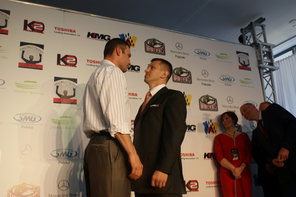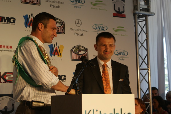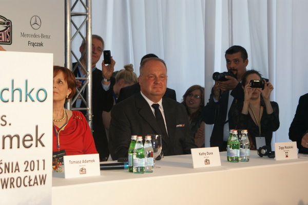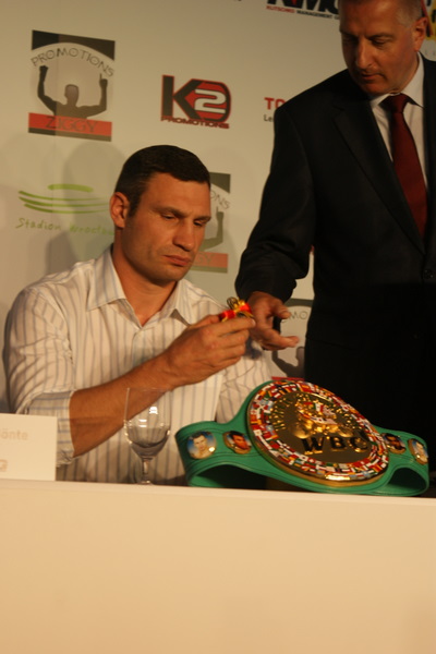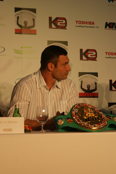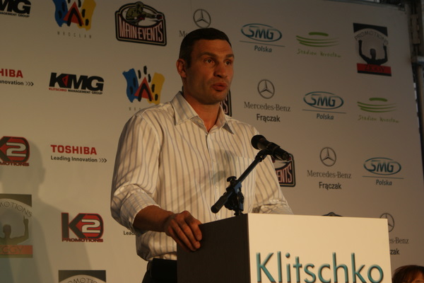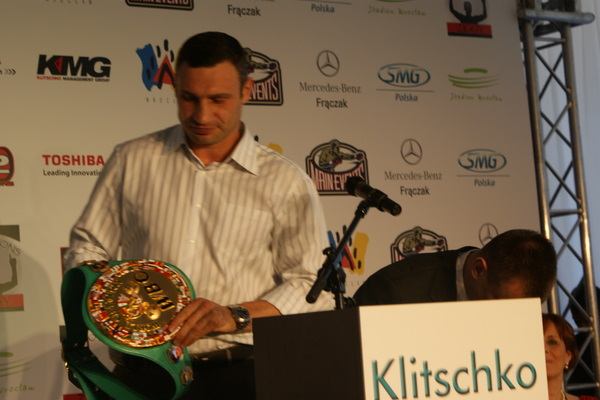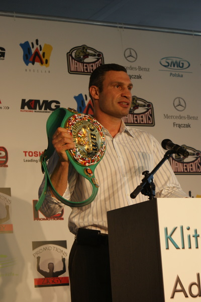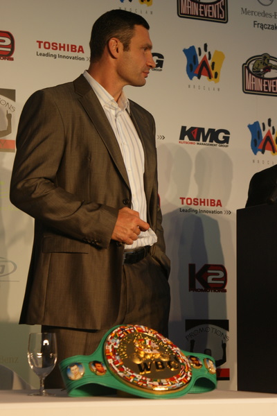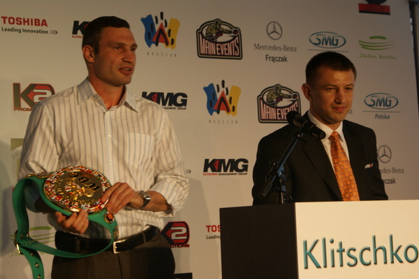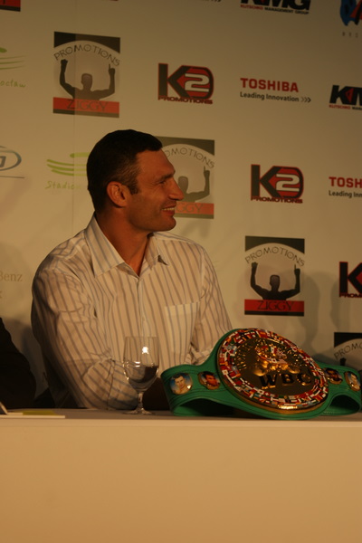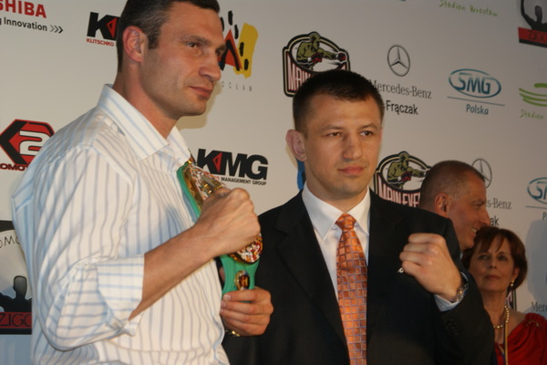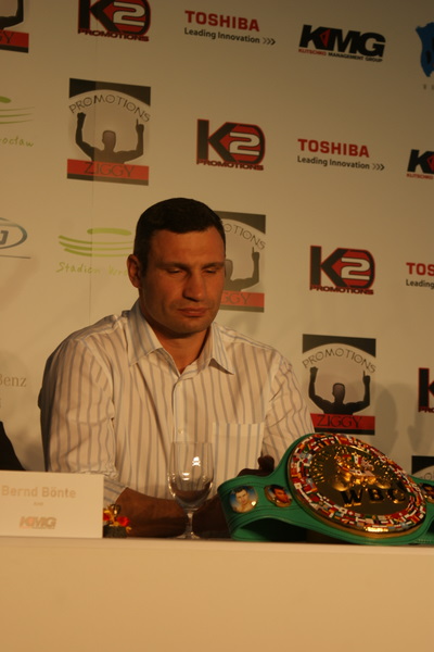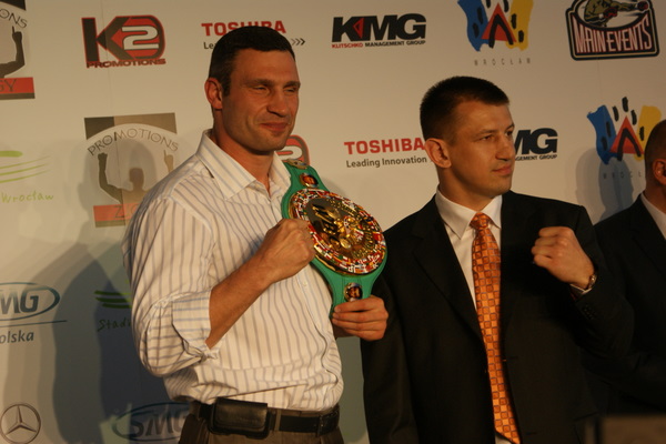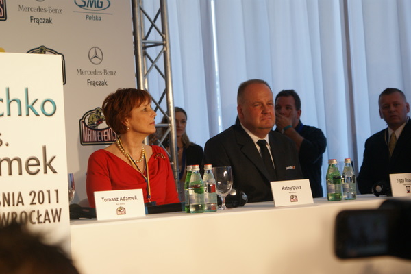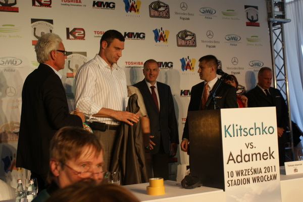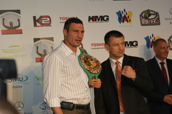 Vitalij był ale dał dupy na całej linii!! Byłem na konferencji a raczej przed budynkiem. Na konferencji to byli tylko szychy i dziennikarze. Ale ogólne wrażenie z tego to totalna klapa!!! Vitek wszedł bocznym wejściem i wyszedł również bocznym. Nikt z fanów go na oczy nie widział. Co to ma być? Wystraszył się czy jak? Adamek chociaż przeszedł i się przywitał z fanami na dzień dobry. Szacun dla niego. Ale potem to już kompletne dno. Rolety zasłonięte nic nie było widać. Fani jedynie cieszyli oko przechodzącymi hostessami, które muszę przyznać było naprawdę piękne. Po konferencji oczywiście zamkniętej dla śmiertelników nasz Tomek w końcu ponownie pojawił się przed kibicami a raczej przed kamerą Polsatu. Dał krótki wywiad, a na pytanie czy można zrobić sobie z nim zdjęcie odpowiedział, że już musi iść. Niestety. Bardzo wielkie podziękowania dla Darka Snarskiego i Maćka Zegana, którzy potrafili jako jedyni rozdać autografy. Dzięki wielkie. Mateusz Borek też się trochę pokazał. Ale WIELKI NEGATYW dla Kliczki. To co on zrobił dziś i jak zlekceważył fanów to chyba mu nikt nie zapomni. Aaa... i pozdrawiam pana Azjatę pracującego w restauracji, który potrafił rozbawić fanów.