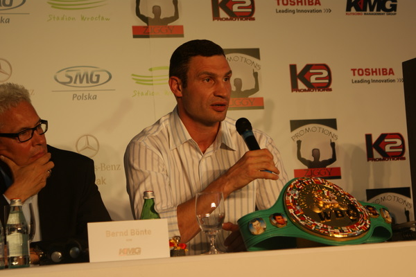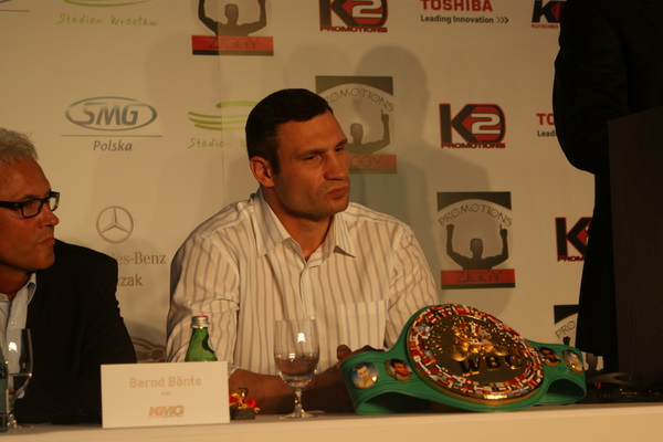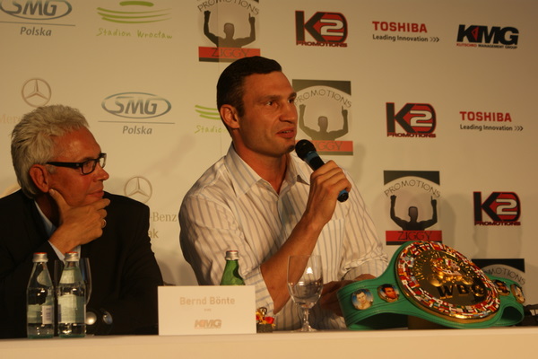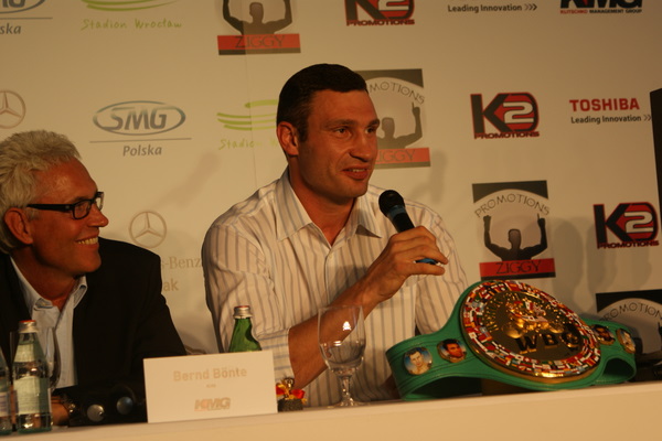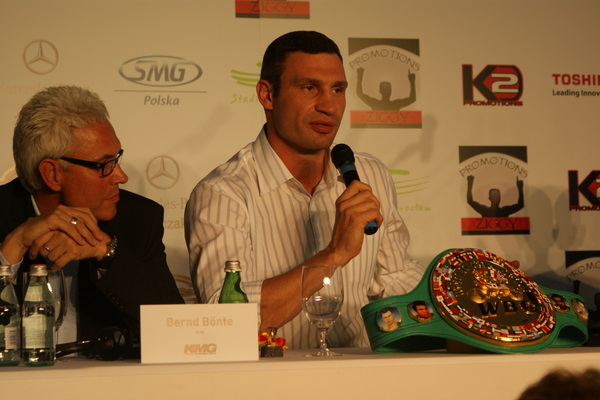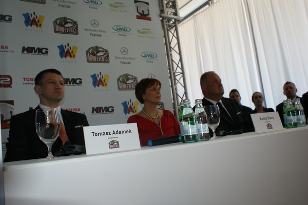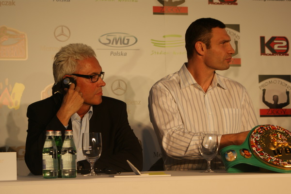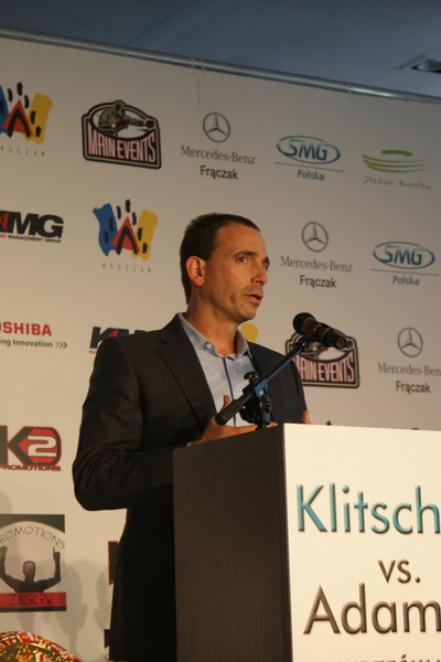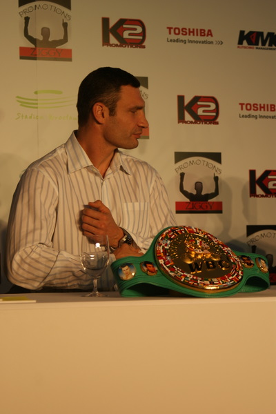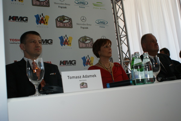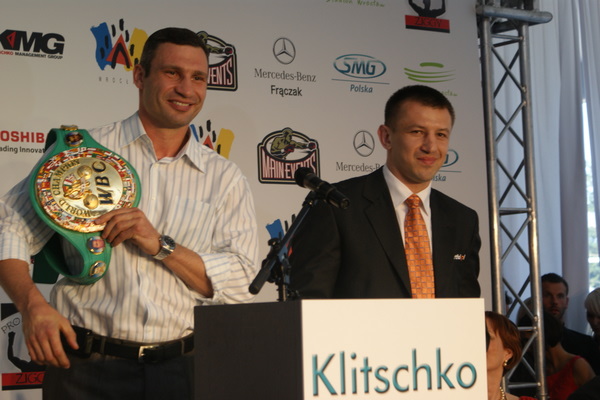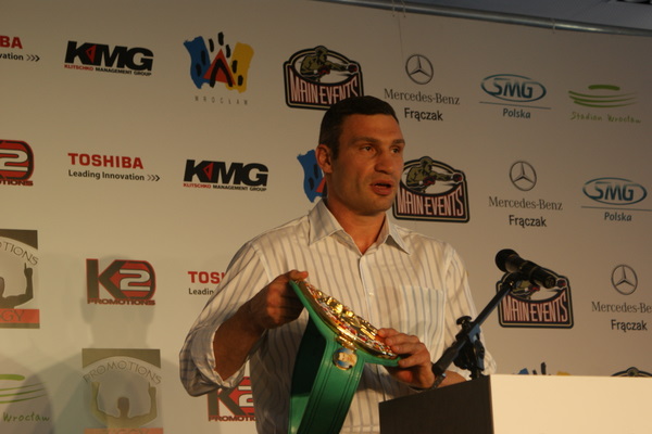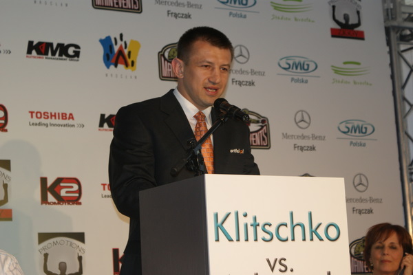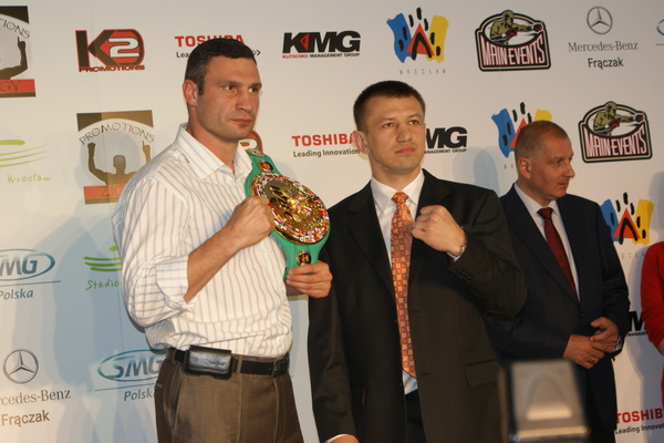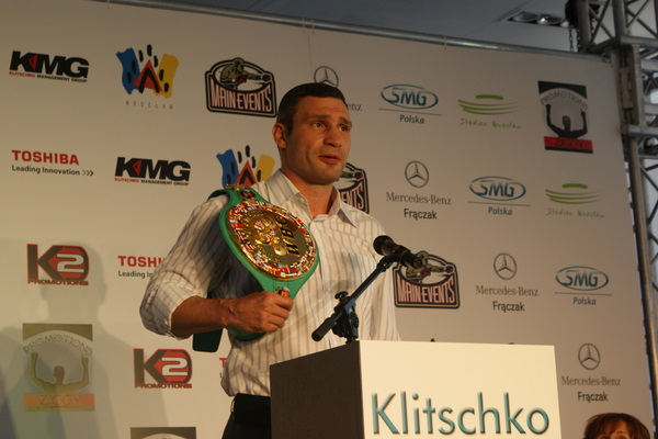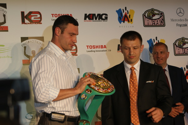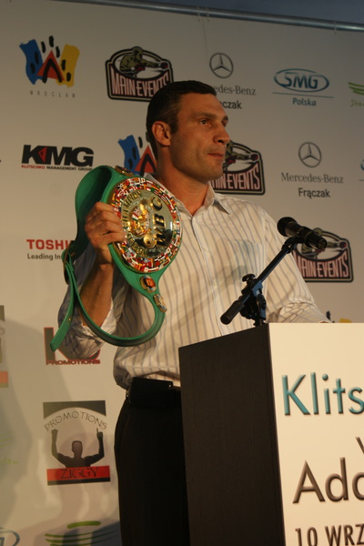 Vitalij był ale dał dupy na całej linii!! Byłem na konferencji a raczej przed budynkiem. Na konferencji to byli tylko szychy i dziennikarze. Ale ogólne wrażenie z tego to totalna klapa!!! Vitek wszedł bocznym wejściem i wyszedł również bocznym. Nikt z fanów go na oczy nie widział. Co to ma być? Wystraszył się czy jak? Adamek chociaż przeszedł i się przywitał z fanami na dzień dobry. Szacun dla niego. Ale potem to już kompletne dno. Rolety zasłonięte nic nie było widać. Fani jedynie cieszyli oko przechodzącymi hostessami, które muszę przyznać było naprawdę piękne. Po konferencji oczywiście zamkniętej dla śmiertelników nasz Tomek w końcu ponownie pojawił się przed kibicami a raczej przed kamerą Polsatu. Dał krótki wywiad, a na pytanie czy można zrobić sobie z nim zdjęcie odpowiedział, że już musi iść. Niestety. Bardzo wielkie podziękowania dla Darka Snarskiego i Maćka Zegana, którzy potrafili jako jedyni rozdać autografy. Dzięki wielkie. Mateusz Borek też się trochę pokazał. Ale WIELKI NEGATYW dla Kliczki. To co on zrobił dziś i jak zlekceważył fanów to chyba mu nikt nie zapomni. Aaa... i pozdrawiam pana Azjatę pracującego w restauracji, który potrafił rozbawić fanów.