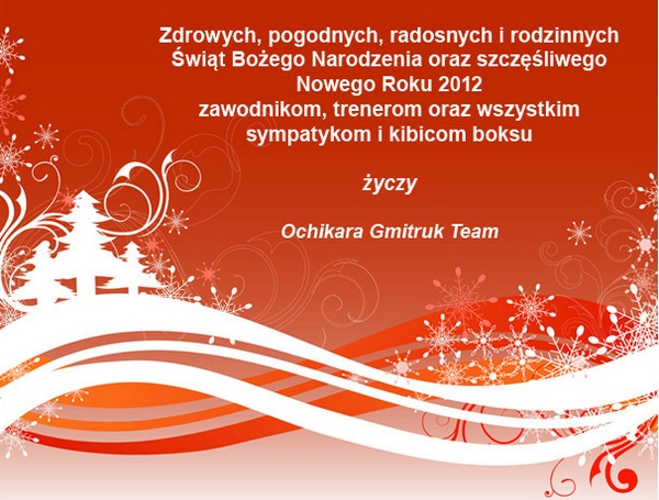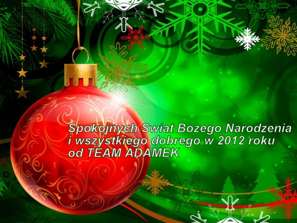 Wszystkiego najlepszego z okazji Świąt Bożego Narodzenia, zdrowia, spokoju, radości, pomyślności oraz spędzenia czasu w rodzinnej ciepłej atmosferze dla redakcji bokser.org, czytelników, forumowiczów i wszystkich sympatyków boksu WESOŁYCH ŚWIĄT I SZCZĘŚLIWEGO NOWEGO 2012 ROKU
