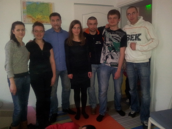 Piotr Wilczewski, Dariusz Sęk, Michał Żeromiński i trener Jarosław Soroko spotkali się w wychowankami świetlicy terapeutycznej na warszawskiej Pradze.