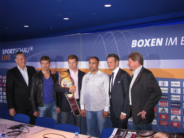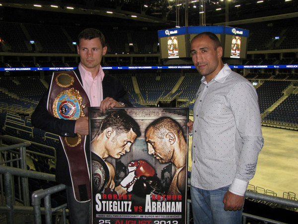 Galeria zdjęć z konferencji prasowej zapowiadającej galę w Berlinie. 25 sierpnia pasa mistrza świata federacji WBO w wadze super średniej przed Arthurem Abrahamem bronić będzie Robert Stieglitz.
