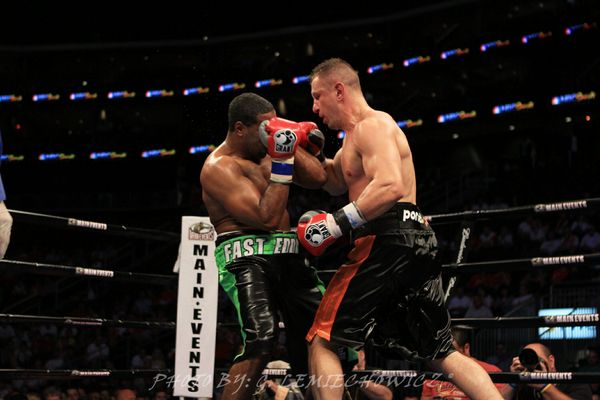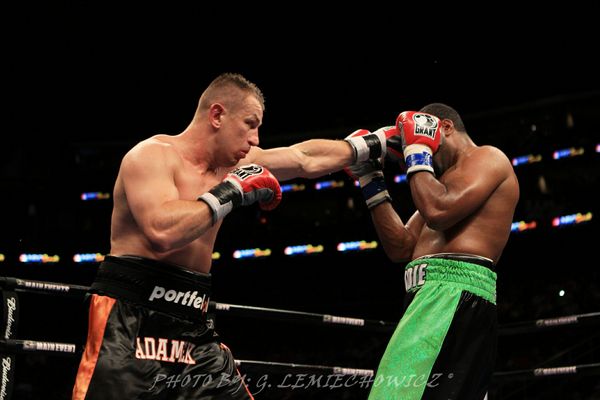 Bunktrek dziwne jest ,że Adamek rzadziej trafiał przy tak dużej dysproporcji w ilości wyprowadzonych ciosów.Przy tak poważnej kontuzji(ze względu na całkowite wyłączenie przedniej ,punkującej i słóżącej do defensywy ręki)dziwne ,że Adamek nie doprowadził tego do tko albo przynajmniej wielkiej deklasacji Amerykanina.