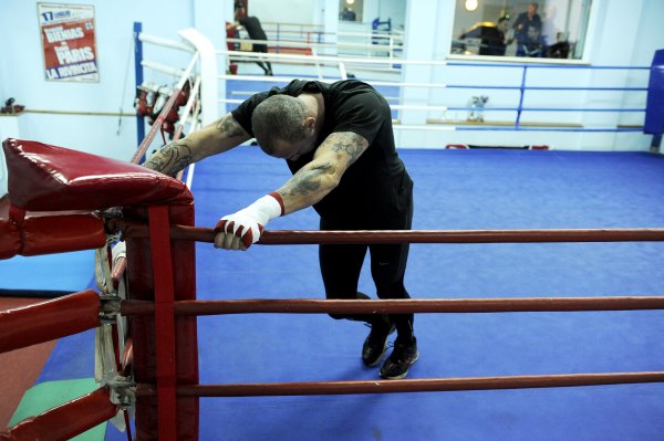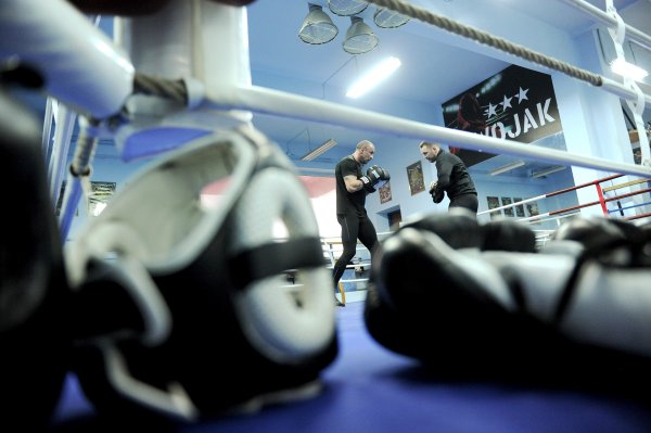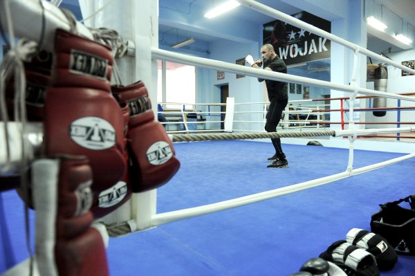 Widać że po Playu najbardziej sie zmęczył bo aż w narożniku łeb ugina. PlayStation to będzie teraz innowacyjna metoda treningu zainicjowana przez miszcza EBU Chemka... A tak poważniej to trochę żenada takie zdjecia... tutaj poważna mina, worek, tarczowanie i nagle JEB PLAYSTATION - ale widać że ma sponsora, jak każda ringowa dziwka.