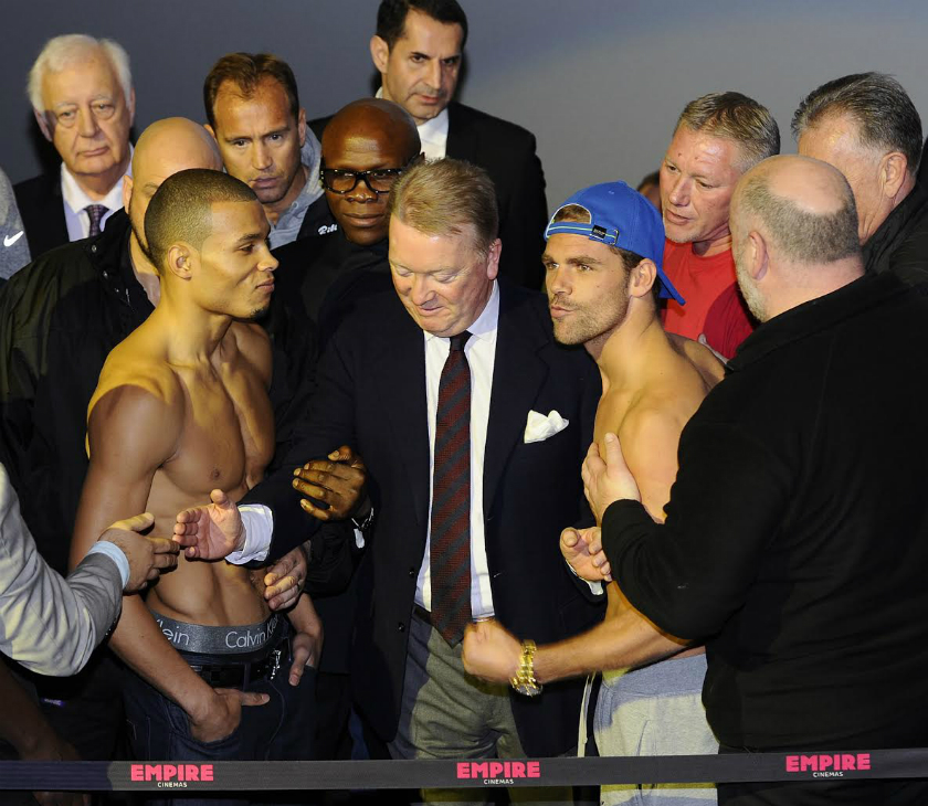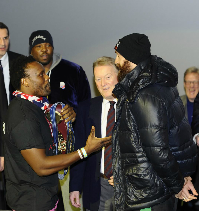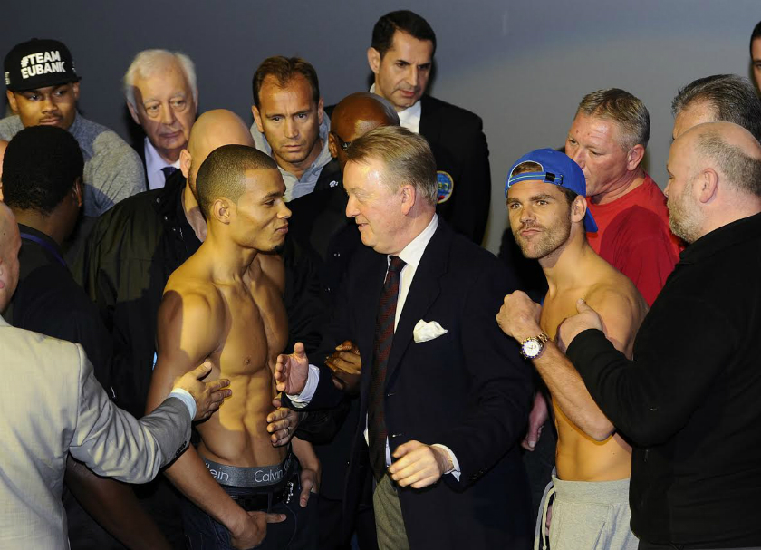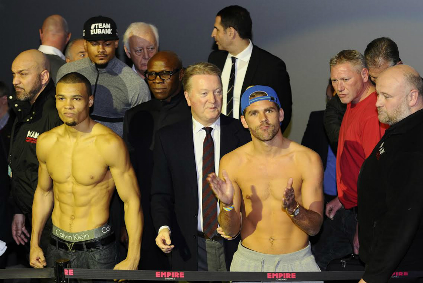 Co do samych walk: Chisora-Fury. Dereck na pewno nie jest rozbity, bo gdyby byl to by kończyl na deskach lub przynajmniej byl liczony, a tak przecież nie bylo w jego ostatnich walkach! Gerber ma czym uderzyć o Pali już nie wspominając, bo ten naprawdę bije bardzo mocno! Z pewnością odporność Derecka nie jest już taka sama jak choćby z walki z Helleniusem, ale wciąż szczękę ma co najmniej dobrą! Pewne jest za to, że 'Del Boy' będzie lepszy niż w ich pierwszej walce gdzie kompletnie olal przygotowania. Kondycyjnie powinien to dobrze znieść, ale powinien unikać klinczy, bo w ten sposób Fury sponiewieral Cunninghama i mocno oslabil. Na pewno doświadczenie też po stronie Chisory, który walczyl z lepszymi od czasu ich pierwszej walki. No i z wysokimi również dobrze się walczy Dereckowi, na pewno dużo lepiej niż z podobnymi gabarytowo do niego oponentami. Fury dawno nie walczyl. Haye dwa razy go zrobil w bambuko, również z Chisorą walka byla przekladana. Jedynie ten Abel ostatni przeciwnik Tysona, ale jedna walka to stanowczo za malo na tak dlugi okres czasu. W każdym bądź razie ja ściskam kciuki za Chisorę. Chcialbym, że znokautowal tego komika. Fury wyglądal na tej ceremonii ważenia jak jakiś menel wyciągnięty chwilę wcześniej z pod budki z piwem! Saunders-Eubank Jr Billy z pewnością ma większe doświadczenie, zawalczyl kilka 12-tek i mial też lepszych przeciwników. Eubank Jr wydaje się być naturalnym talentem, z kolei Saunders nadrabia swoje braki wielkim sercem do walki. Tutaj jest prawdziwa zlość, obaj naprawdę za sobą nie przepadają i oby któryś z nich się nie "zagotwal" w czasie walki, bo może się to dla niego tragicznie skończyć! Bardziej opanowany na wadze wydawal się być Eubank Jr. Zobaczymy jak będzie w ringu. Niech wygra lepszy! Choć ja będę bardziej kibicowal chyba Saundersowi!