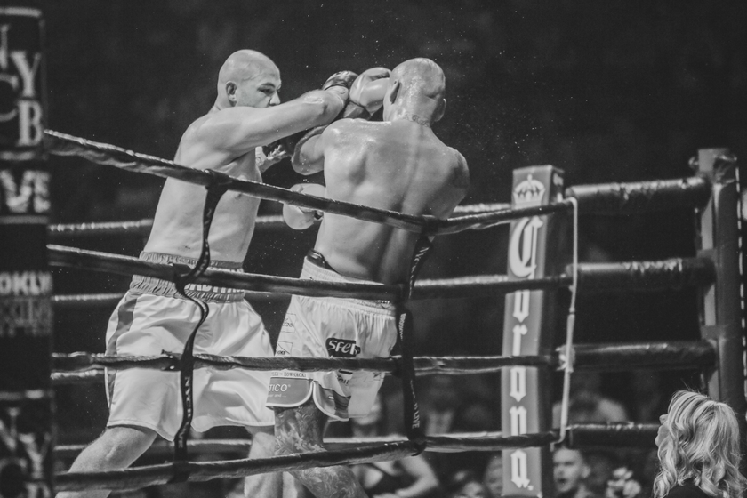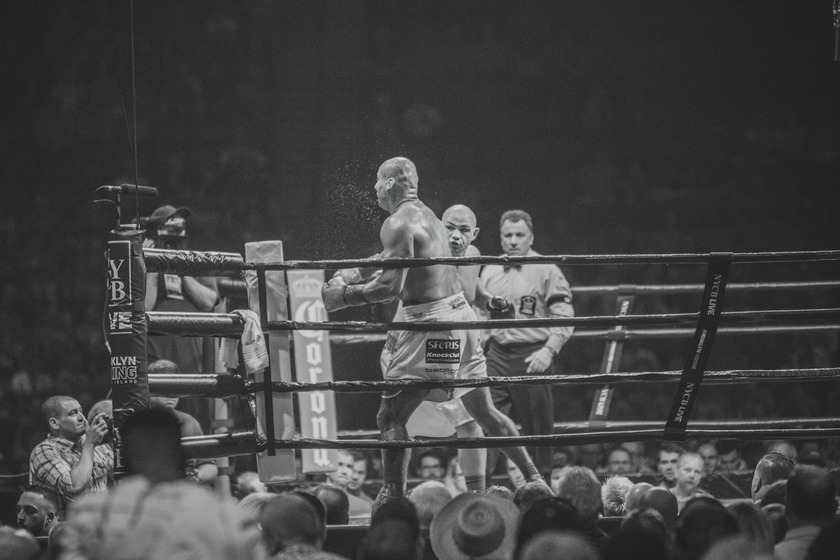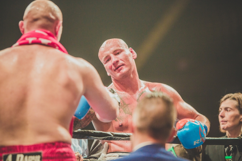 A znowu Kownacki walczył jak taki szkolny kujon, niezbyt błyskotliwy, ale wyuczony podstaw. Garda wysoko, zaganianie gita do lin, ciosy, ciosy, sztywne i pokraczne z nogami w tyle, ale ciągle leciały ciosy. I na dół i na górę. A git myślał, że się bije pod dyskoteką z jakimś leszczem.