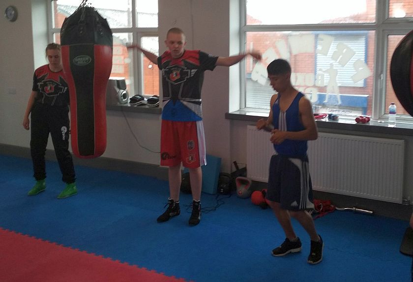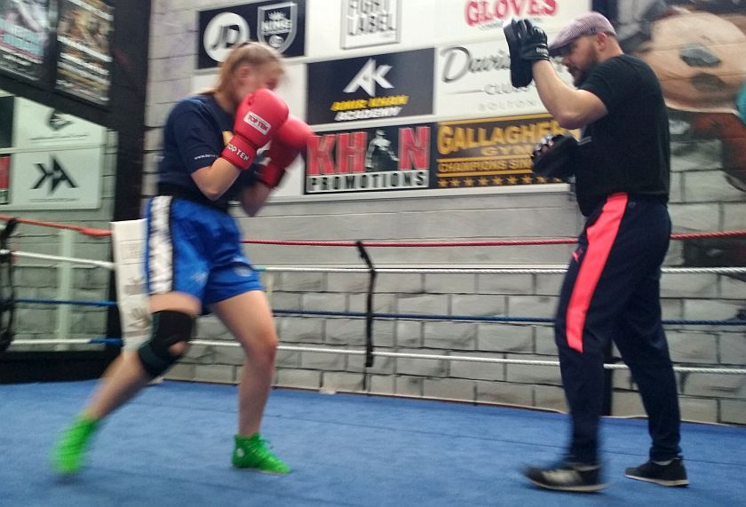 Manchester/Bradford. Sebastian Lubecki w ładnym stylu odniósł zwycięstwo. Torunianie wspólnie z pięściarzami Bolton Champions poznawali tajniki szermierki na pięści.