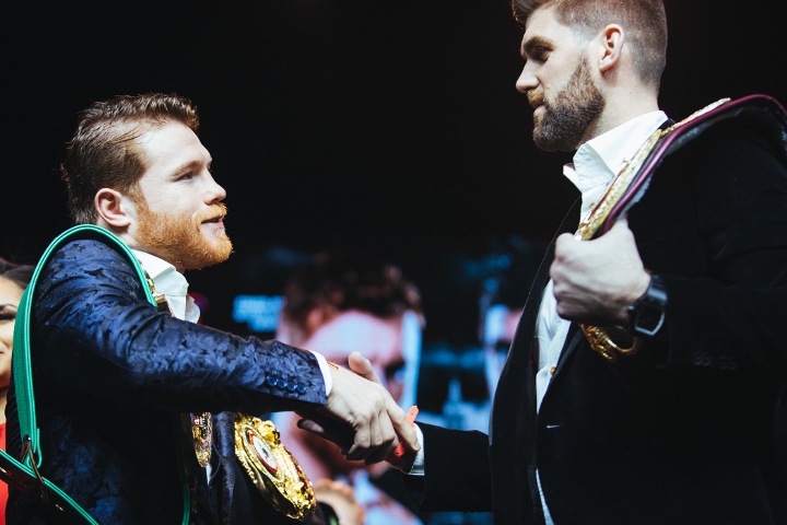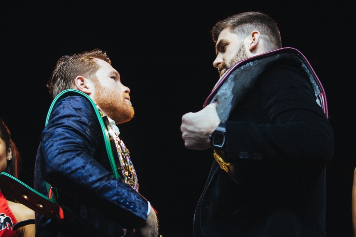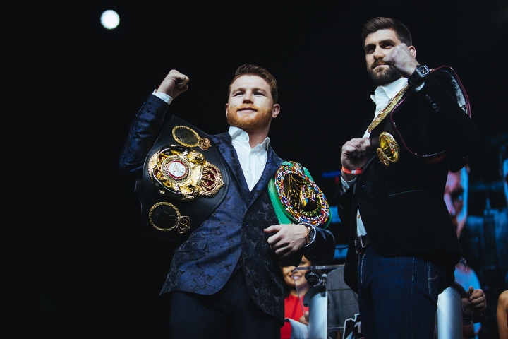 Fotorelacja - Saul Alvarez (50-1-2, 34 KO) i Rocky Fielding (27-1, 15 KO) stanęli przed sobą oko w oko. Canelo rusza na podbój trzeciej kategorii.