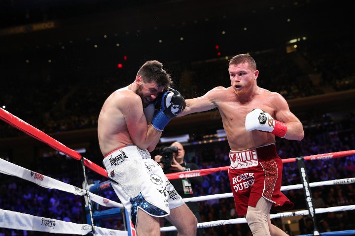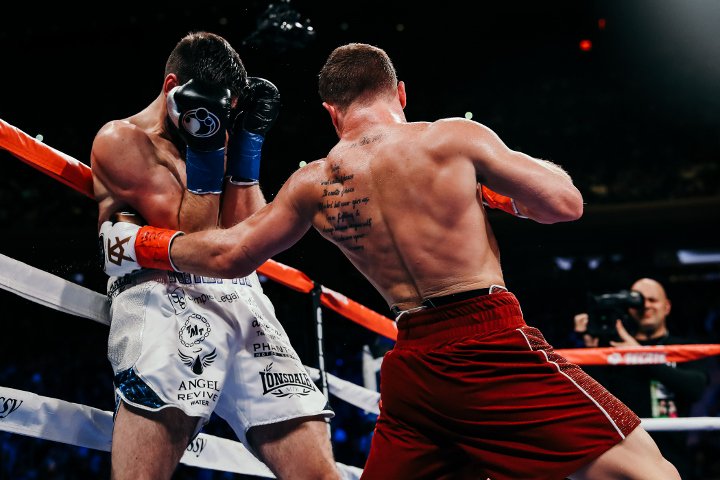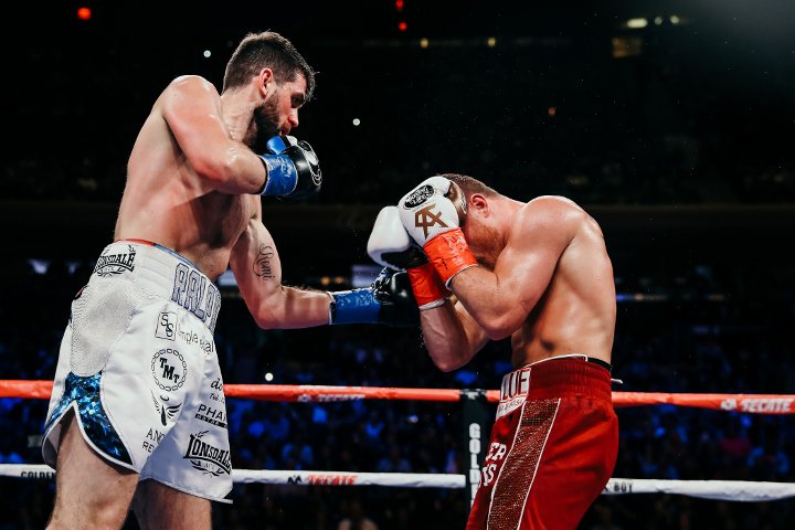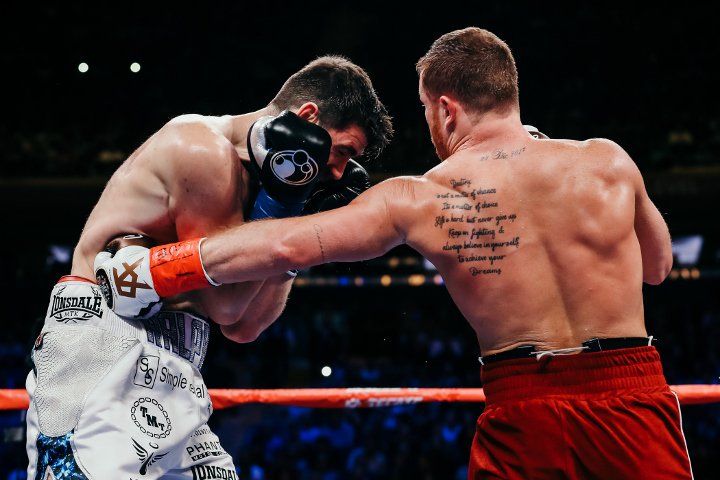 Saul Alvarez (51-1-2, 35 KO) porozbijał w niecałe trzy rundy Rocky'ego Fieldinga (27-2, 15 KO), odbierając mu pas WBA Regular kategorii super średniej. Przedstawiamy Wam obszerną fotorelację z tego krótkiego pojedynku.