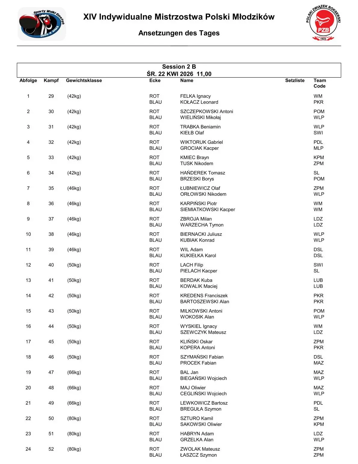 Poniżej wideo z obu ringów oraz rozpiska walk.